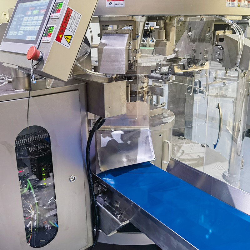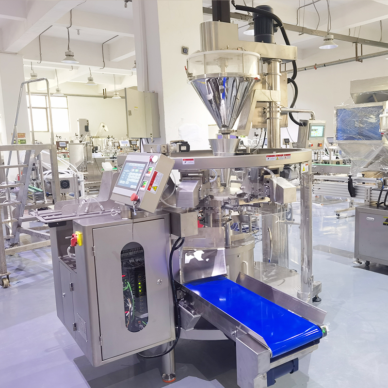 八工位粉劑包裝機(jī)的工作方式極為智能靈活,工作人員在經(jīng)過(guò)參數(shù)設(shè)定后,設(shè)備能夠在自動(dòng)模式下,無(wú)縫銜接的配合上下游自動(dòng)化設(shè)備執(zhí)行包裝任務(wù),給袋式包裝設(shè)備的工作方式是操作人員設(shè)定好所有工作參數(shù)后,由給袋裝置自動(dòng)抓取輸送至開(kāi)袋處,經(jīng)過(guò)開(kāi)袋智能檢測(cè)系統(tǒng),自動(dòng)將包裝袋呈現(xiàn)出打開(kāi)的狀態(tài),八工位粉劑包裝機(jī)若是檢測(cè)到無(wú)袋或者不開(kāi)袋等情況狀態(tài)下,下料動(dòng)作會(huì)自動(dòng)停止。在一切正常的狀態(tài)下,物料會(huì)按照工作人員設(shè)定的包裝重量進(jìn)行充填,并保證每袋商品充填量的一致性輸出。充填完成后,袋子被輸送至封口工位進(jìn)行封口處理,隨后經(jīng)過(guò)噴碼、整形等工序。