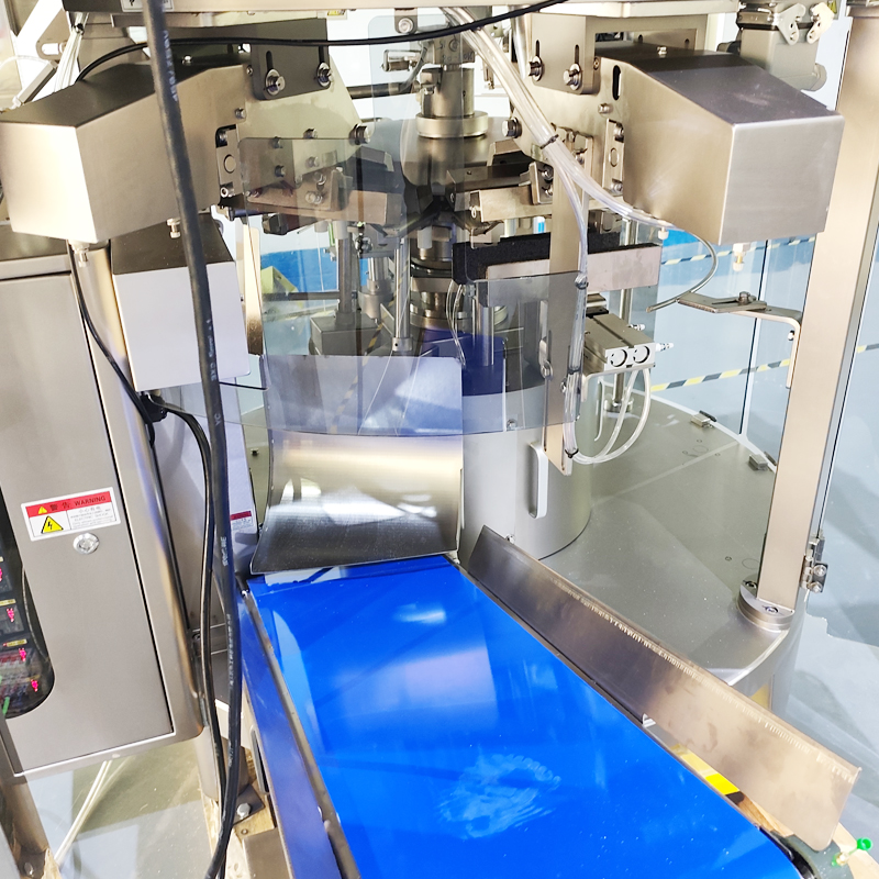 南京星火包裝機械有限公司推出了一款給袋式顆粒食品包裝機,在機器頂部采用了一套四斗線性秤對物料進行自動稱重下料,圓形旋轉式八工位給袋裝置,自動抓取提前預備好的預制袋,并自動完成后續(xù)的一系列包裝流程。給袋式顆粒食品包裝機采用電子秤計量重量,也可以根據不同顆粒的特性(如密度、流動性、顆粒大小等)和包裝精度要求,靈活選擇合適的計量方式(電子秤計量、螺桿計量、容積杯計量等多種計量方式),保證每個包裝的重量都一致,誤差控制在±0.5%之內。整機結構設計合理,配備先進的封口裝置,采用熱封、冷封、超聲波封口等多種封口技術,無袋不下料,不開袋不下料,不會浪費物料,而且每個部件的設計都協調合理,安裝拆洗方便快速??Х榷棺詣影b機械的應用成功的實現了從自動上袋、計量下料、封口、打碼到成品輸出的全流程自動化操作,用包裝機械代替了絕大部分的人力勞動,不受人為因素影響,產能保持穩(wěn)定。