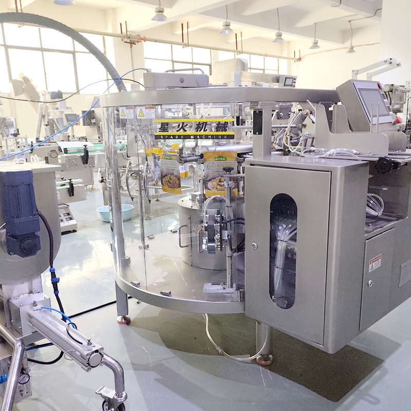 5.可兼容50-1000g的包裝容量,八工位,包裝速度可達(dá)40-70包/分鐘,效率高。