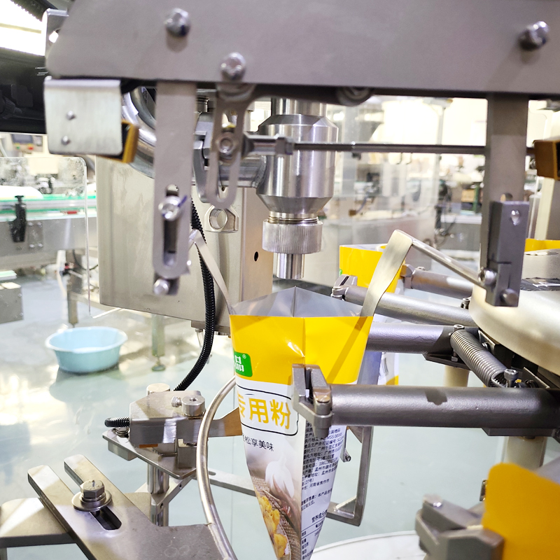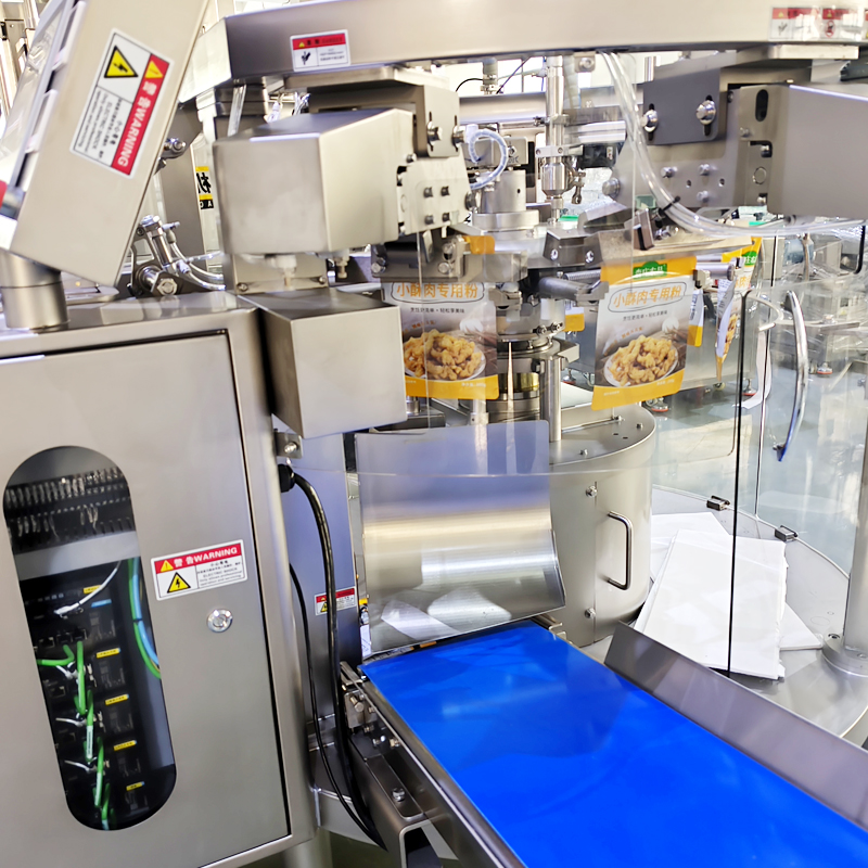 這款全自動(dòng)醬料食品包裝機(jī)是專門針對(duì)預(yù)制袋包裝的一種設(shè)備,主要適用于湯料、醬料類產(chǎn)品,番茄醬、辣椒醬、辣椒油、香菇醬、火鍋底料、花生醬、黃豆醬、調(diào)味醬、鹵味醬汁、燒烤醬等半流體、醬料、含顆粒醬料的包裝。預(yù)制袋高湯包裝機(jī)的儲(chǔ)料箱帶攪拌裝置,防止油料分離,顆粒不會(huì)沉淀,該機(jī)使用食品級(jí)不銹鋼材質(zhì)制造,符合食品安全標(biāo)準(zhǔn),保障醬料高湯的衛(wèi)生安全。全自動(dòng)醬料食品包裝機(jī)采用機(jī)械手或真空吸盤技術(shù),自動(dòng)完成預(yù)制袋的取袋、開(kāi)袋、套袋動(dòng)作,以全自動(dòng)化包裝流程為主,以高精度計(jì)量為核心,代替了整條人工包裝流線,包含了整個(gè)醬料包裝流程。