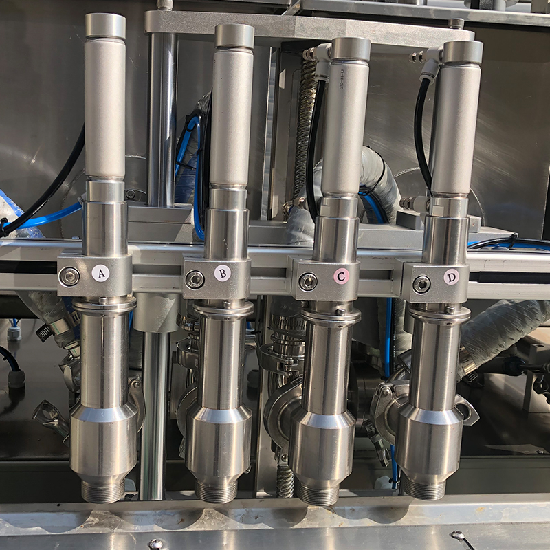 全自動四頭醬料灌裝機(jī)的工作原理是機(jī)遇一個較為精準(zhǔn)的機(jī)制,通過氣缸的動力來實現(xiàn)高粘度醬料的抽取和灌裝?;钊焦嘌b機(jī)械在啟動后,氣缸便進(jìn)入了工作模式,此時將帶動與相連的活塞作往復(fù)直線運動,在活塞向后推動的過程中,灌裝頭則形成了負(fù)壓,此時全自動四頭醬料灌裝機(jī)的灌裝頭相連的單向閥開啟,物料在大氣壓的作用下,從儲料罐內(nèi)吸入至活塞腔室內(nèi),完成吸料過程,在活塞向前運動時,腔室內(nèi)的醬料受到擠壓,壓力增大,使得通向灌裝頭的單向閥打開,物料便被精準(zhǔn)地注入到四個灌裝容器當(dāng)中?;钊焦嘌b機(jī)械在整個生產(chǎn)過程中屬于自動化完成全部的工作內(nèi)容,不需要人工過多干預(yù)。