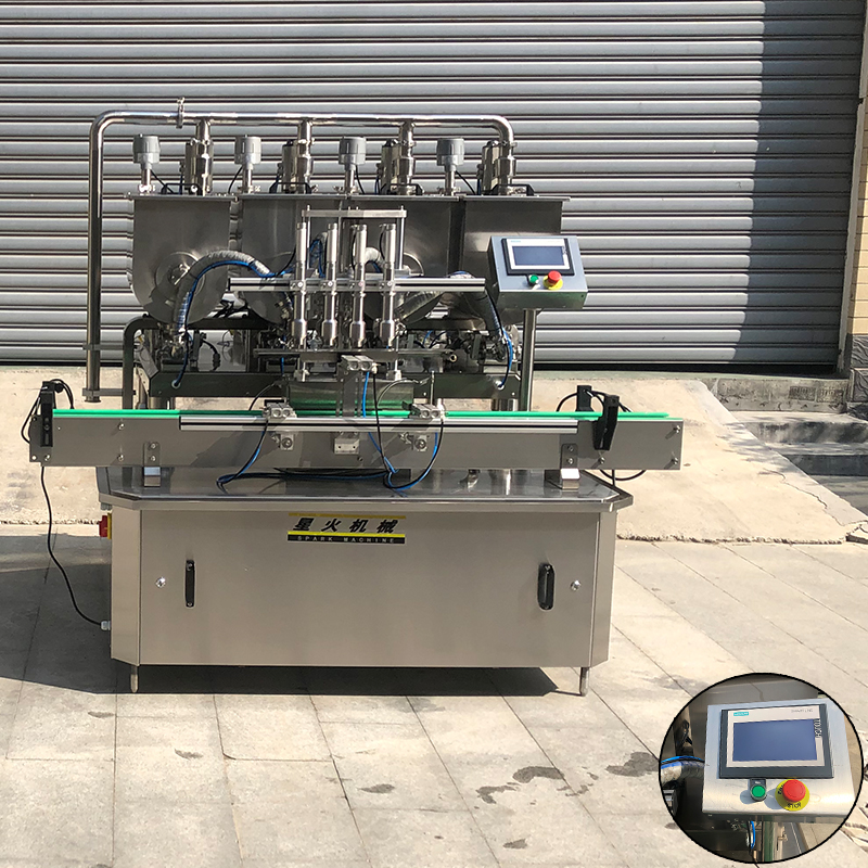 全自動四頭醬料灌裝機(jī)可用于各種高粘稠度醬體物料的自動化生產(chǎn)設(shè)備,對于市面上的:花生醬、甜面醬、蟹黃醬、辣椒醬、芝麻醬、黃豆醬、藤椒醬、剁椒醬、香椿醬、果醬等物料執(zhí)行自主灌裝生產(chǎn)條件。活塞式灌裝機(jī)械擁有四個灌裝頭,四個醬料料箱,以獨特的工作方式和出色的灌裝性能,成為了醬料灌裝產(chǎn)業(yè)提高生產(chǎn)效率、保證生產(chǎn)品質(zhì)的主要生產(chǎn)設(shè)備。星火智能作為專業(yè)制造各種智能化、自動化機(jī)械設(shè)備的生產(chǎn)廠家,通過多年制造經(jīng)驗,為廣大用戶推出了這款高度智能的機(jī)械設(shè)備。