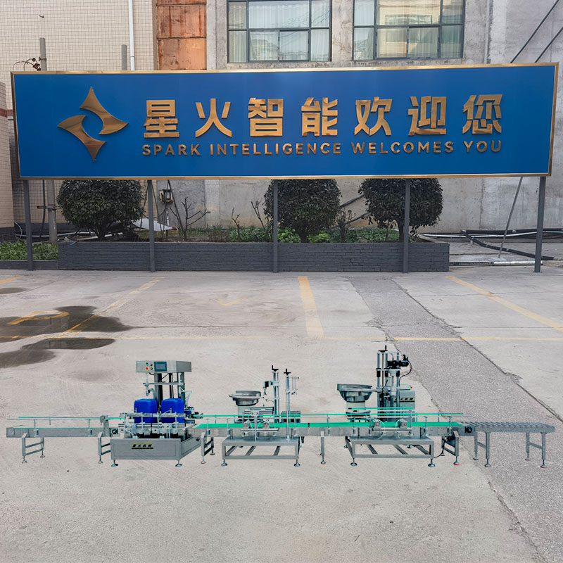 全自動(dòng)液體稱重灌裝機(jī)在化工、醫(yī)藥、食品、農(nóng)業(yè)、建筑、化妝品等行業(yè)當(dāng)中,大桶物料的灌裝工作對(duì)灌裝精度和生產(chǎn)效率無法做到兼?zhèn)涞臓顟B(tài)。全自動(dòng)稱重灌裝機(jī)作為當(dāng)下星火智能設(shè)備的前沿機(jī)械設(shè)備,它融合了高精密機(jī)械稱重感應(yīng)技術(shù)和電子傳感控制的多重保護(hù),能夠?qū)?-30公斤的液體、膏體物料提供高精度的灌裝工作。雙頭定量灌裝旋蓋生產(chǎn)線以整套自動(dòng)化機(jī)械設(shè)備的聯(lián)動(dòng)操控,保障了大桶物料的高難度生產(chǎn)模式。