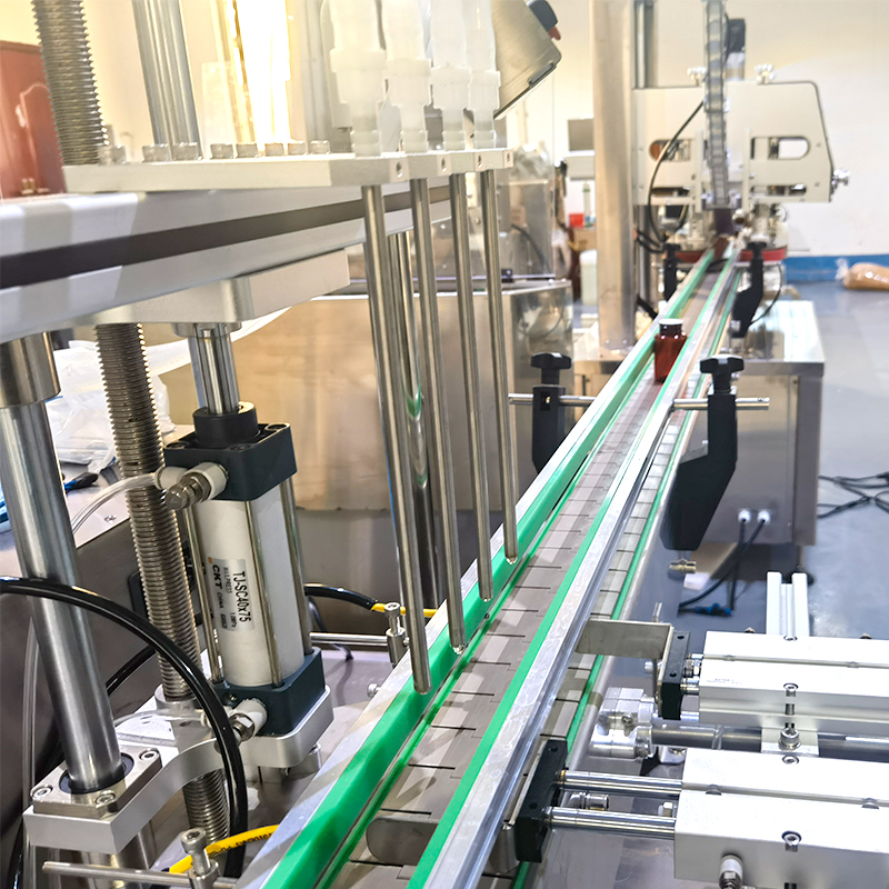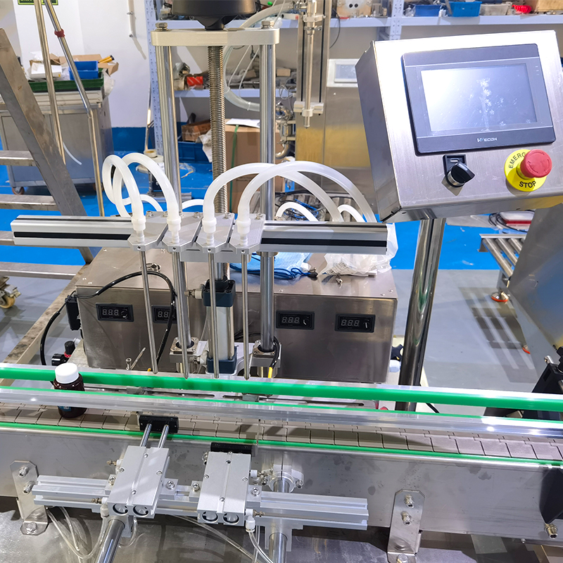 小型液體灌裝機(jī)械采用精密齒輪泵進(jìn)行對(duì)液體的抽取與灌裝,能夠?qū)崿F(xiàn)非常高的計(jì)量精度,工作人員通過(guò)在電腦顯示器進(jìn)行設(shè)定好灌裝參數(shù)以及規(guī)格,全自動(dòng)四頭齒輪泵灌裝機(jī)的高精度傳感器,開(kāi)始針對(duì)料箱內(nèi)的液體進(jìn)行抽出、輸送、充填運(yùn)動(dòng),四個(gè)灌裝頭同步工作,提高了灌裝效率的同時(shí),保證了每瓶容器內(nèi)的液體物料的一致性輸出,在小型液體灌裝機(jī)械進(jìn)入自動(dòng)化投產(chǎn)階段后,電機(jī)驅(qū)動(dòng)齒輪泵的主動(dòng)齒輪旋轉(zhuǎn),帶動(dòng)從動(dòng)齒輪同步轉(zhuǎn)動(dòng),從而將液體從進(jìn)料口吸入,并通過(guò)精確的齒輪間隙將其定量地輸送到出料口,實(shí)現(xiàn)灌裝操作。