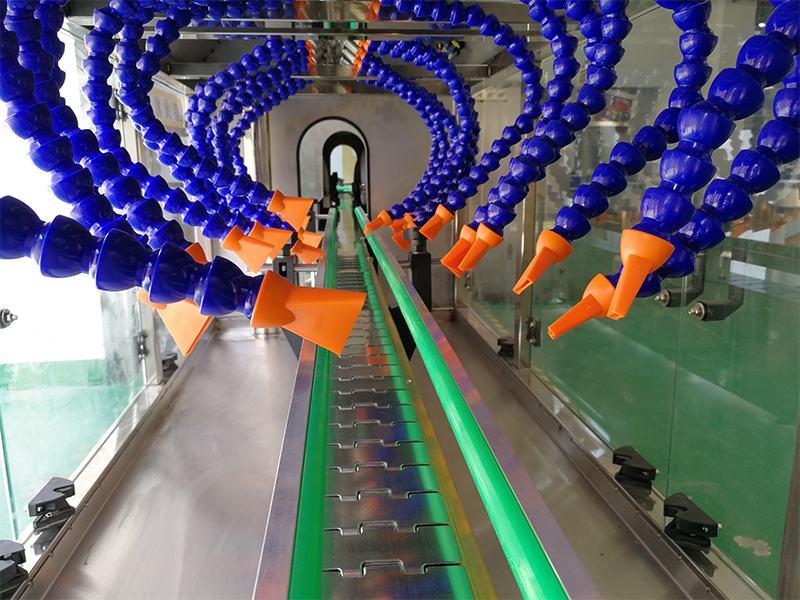 殺菌吹瓶:空瓶進(jìn)入全自動(dòng)空罐殺菌吹掃機(jī),進(jìn)行清潔和殺菌處理。
