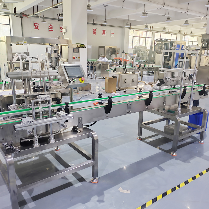 自動(dòng)液體灌裝壓蓋機(jī)有四頭齒輪泵液體灌裝機(jī)和自動(dòng)壓蓋機(jī)共同組成,實(shí)現(xiàn)了液體灌裝和壓蓋的連貫性工作,利用輸送帶移動(dòng)容器,節(jié)省時(shí)間和人力,更大程度的釋放了自動(dòng)化設(shè)備的優(yōu)勢。全流程自動(dòng)化,從瓶子輸送、液體灌裝、蓋子加蓋到最終壓蓋封口,均由PLC控制系統(tǒng)智能調(diào)度完成,減少人工干預(yù),提升效率。南京液體灌裝設(shè)備采用模塊化設(shè)計(jì),支持與貼標(biāo)機(jī)、噴碼機(jī)、旋蓋機(jī)等設(shè)備聯(lián)動(dòng),形成自動(dòng)化生產(chǎn)線(如化妝品、食品行業(yè)常用配置)。