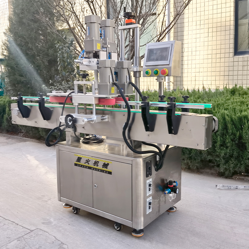 灌裝工作的收尾總是以理蓋、上蓋、旋蓋作為成品結(jié)束工序的一項。全自動夾蓋旋蓋機是星火智能設(shè)備新開發(fā)的一款多功能機械設(shè)備,多功能理蓋旋蓋機通過精心的設(shè)計結(jié)構(gòu),為玻璃瓶、塑料瓶、方形瓶、異形瓶等容器提供了良好的旋蓋效果。全自動夾蓋旋蓋機實現(xiàn)了從理蓋、上蓋、旋蓋全流程的自動化操作,操作過程無需人工干預(yù),提高生產(chǎn)率。